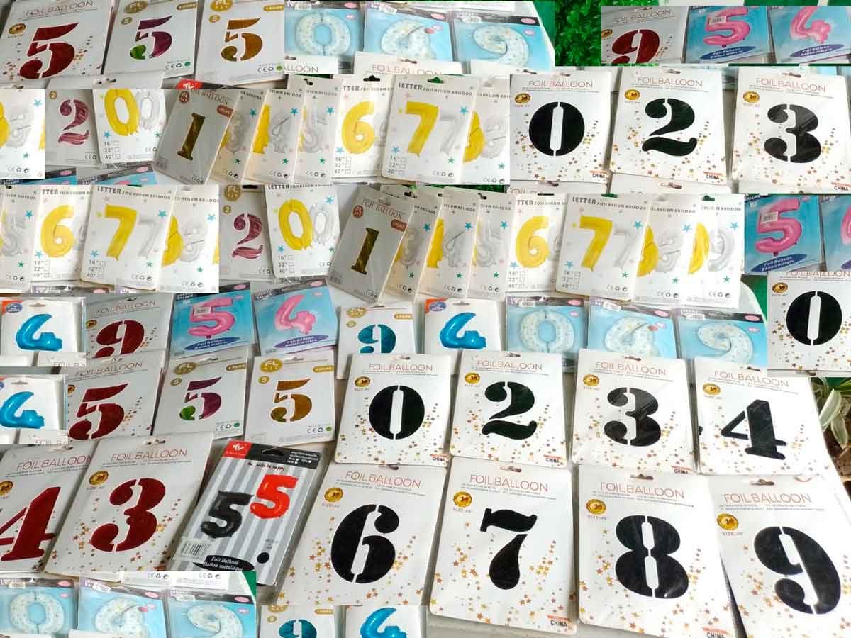Numero en globo del 0 al 9 en variedad de colores en tamaño grande 40″